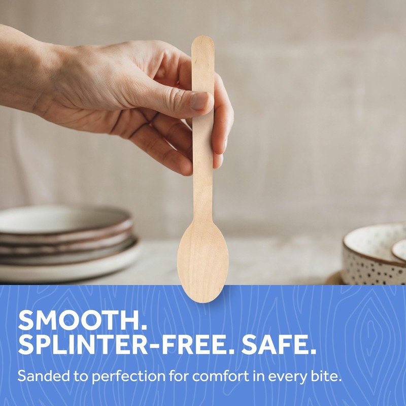- Durable, Smooth & Splinter-Free – These sturdy wood spoons are built to hold up to hot soups, cold desserts, and everything in between. Sanded to a fine finish for a smooth, comfortable feel—safe for guests of all ages.