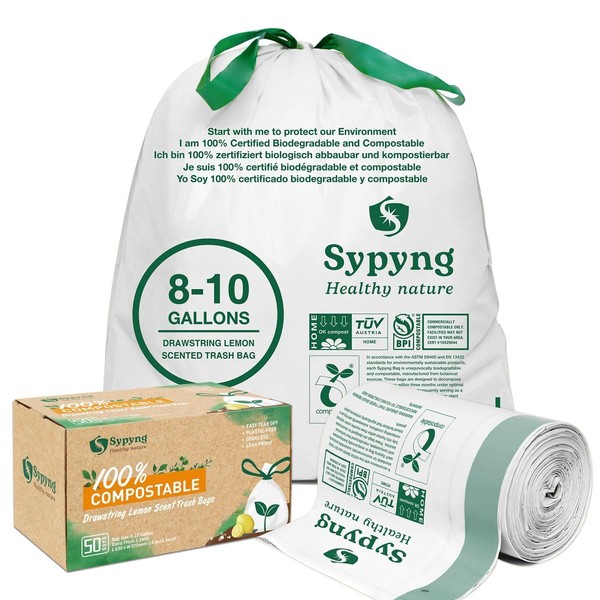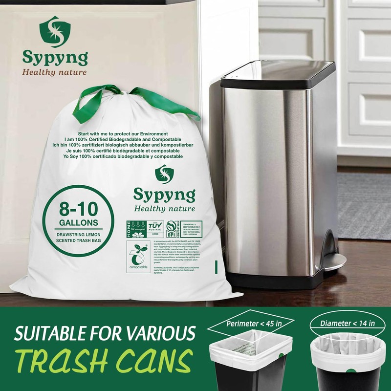 - 🍀【𝐂𝐨𝐦𝐩𝐨𝐬𝐭𝐚𝐛𝐥𝐞 𝐓𝐫𝐚𝐬𝐡 𝐁𝐚𝐠𝐬】Our 8-10 gallon trash bags are fully 100% biodegradable and compostable, ensuring you're making a responsible choice for the environment. Lemon-scented for a fresh, clean experience, they are ideal for your kitchen, garden or office space. Perfect for eco-conscious households. They are suited to handle kitchen scraps and yard waste alike. 𝐒𝐚𝐲 𝐠𝐨𝐨𝐝𝐛𝐲𝐞 𝐭𝐨 𝐬𝐩𝐢𝐥𝐥𝐬 𝐚𝐧𝐝 𝐥𝐞𝐚𝐤𝐬.