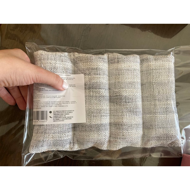 - Es normal que se escape un polvito de la tela, ya que contiene una mezcla de semillas y plantas aromáticas que con el uso del producto en ocasiones pueden escapar de la compresa