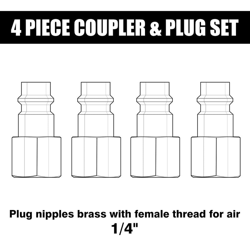 • ★PACKAGE INCLUDED: Package includes 4 pieces male euro female threaded brass air couplers.