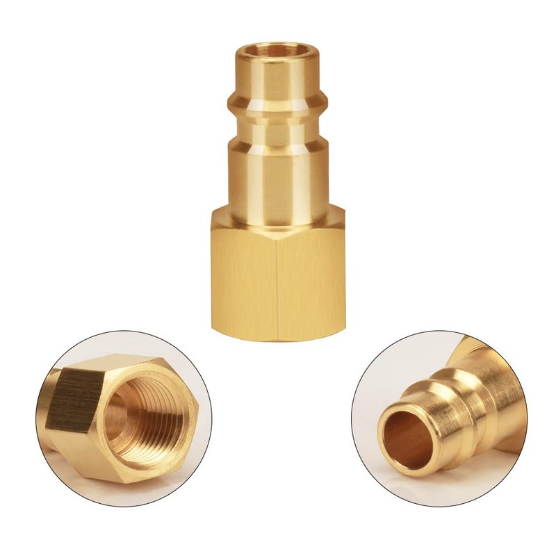 • ★Advantage: Made of brass, it has good sealing performance, is rust resistant, has a long service life, is anti-static and is more suitable for oil and gas pipes. Spring loaded quick couplings for use on the compressor side have a built in valve to prevent air escaping when changing tools.