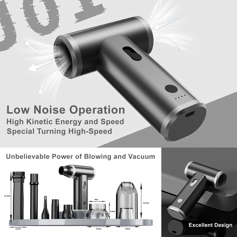 - 【Durable High-Speed Brushless Turbojet Fan】Delivering an impressive 260000RPM for efficient and thorough cleaning. Its robust design includes an aluminum body and aviation-grade alloy fan blades, ensuring long-lasting performance and resilience. The silicone button adds to its durability, offering a premium feel and reliable operation. This powerful and enduring construction guarantees optimal cleaning power, making the MTJ-Pro a top choice for various applications.