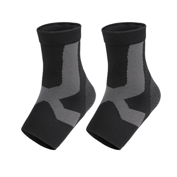 Compression Ankle Sleeve, Athletic Support Brace, Black and Gray, 1 Pair (X-L...
