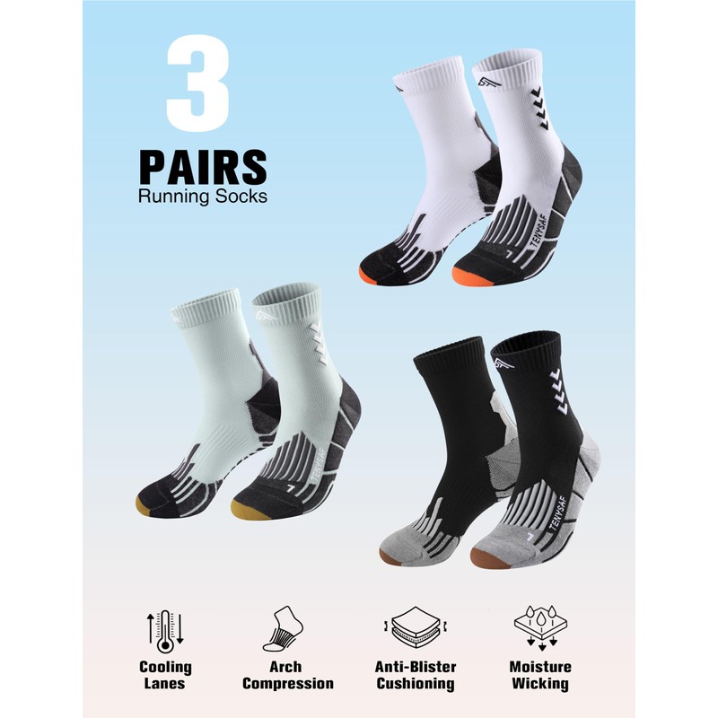 Compression Crew Running Socks: Athletic Socks for Men Women with Cushion,3 Pairs Work Hiking Basketball Sport Socks