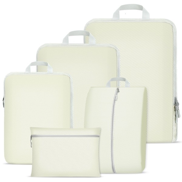 Compression Packing Cubes Set, Ultralight Expandable Travel Organizers for Carry on Luggage,Waterproof Travel Packing Cubes,Compression Suitcase Essential Bag (Beige, 5 Pack)