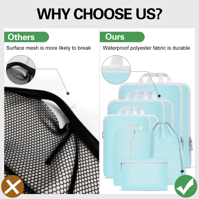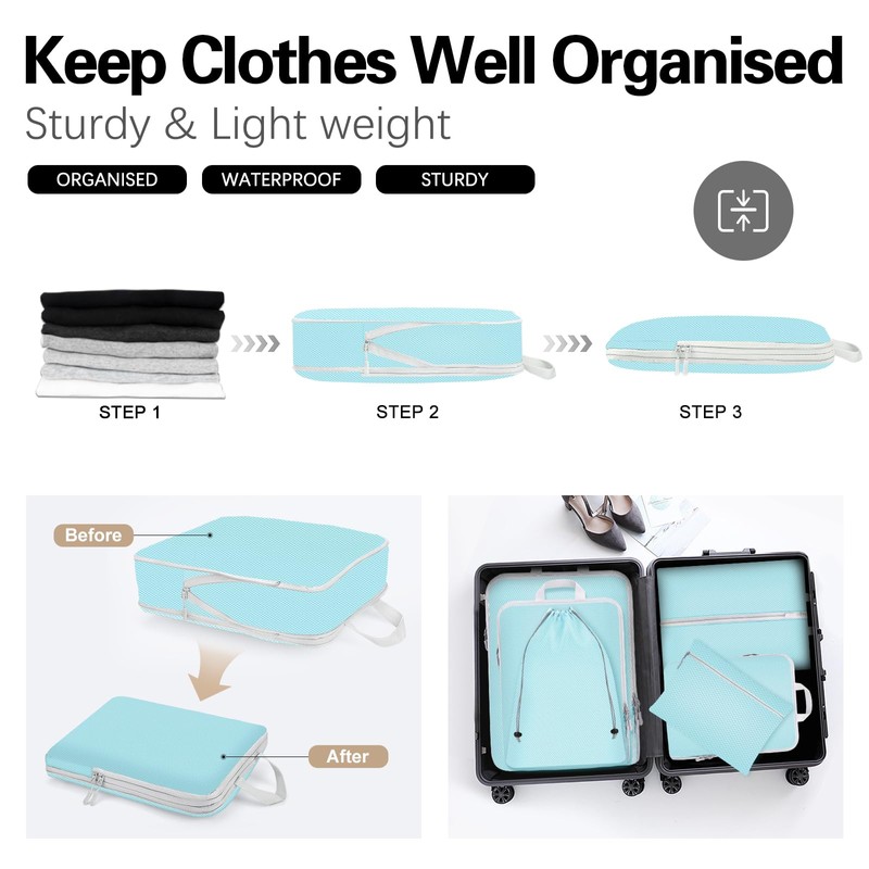 - Protect Clothes: Packing cubes for travel keep your clothes, footwear, toothbrushes, dirty laundry and so on in organization, travel bags protect suits from dirt, dust.