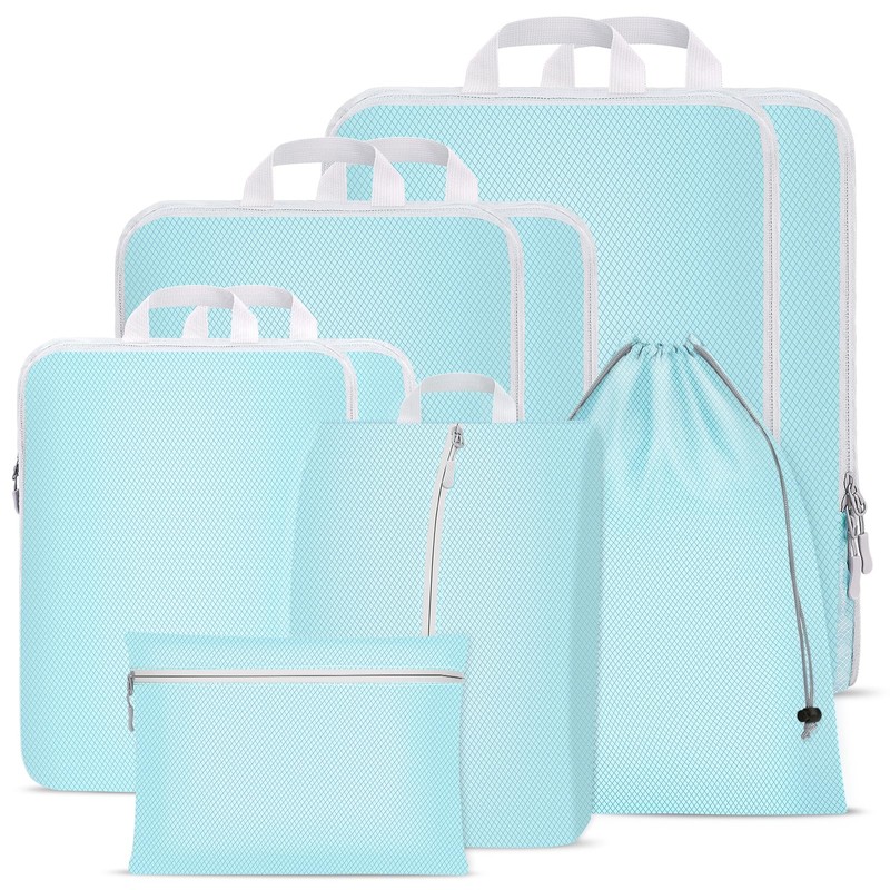 - High Quality/Durable/Portable Cubes: Packing cubes in the set use double zipper, handles. All travel organiser bags are made of High Quality Fabric, lightweight, water-resistant, portable, foldable, resilient wear-resistant, and does not fade and easy to clean. Just use this set of travel organiser packing bags, eliminating the hassle of buying other travel packing cubes.