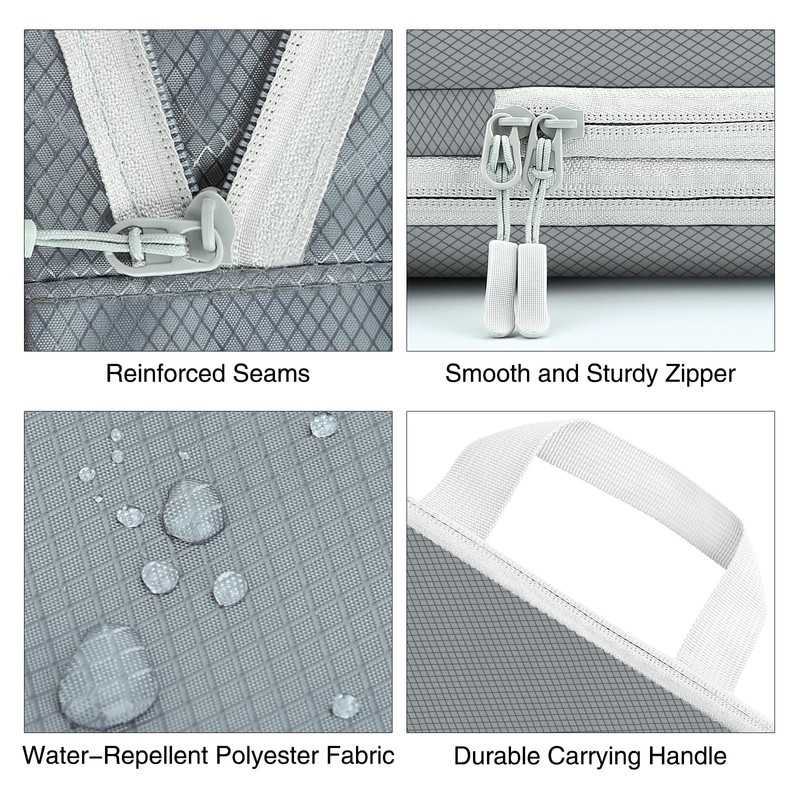 - High Quality/Durable/Portable Cubes: Packing cubes in the set use double zipper, handles. All travel organiser bags are made of High Quality Fabric, lightweight, water-resistant, portable, foldable, resilient wear-resistant, and does not fade and easy to clean. Just use this set of travel organiser packing bags, eliminating the hassle of buying other travel packing cubes.