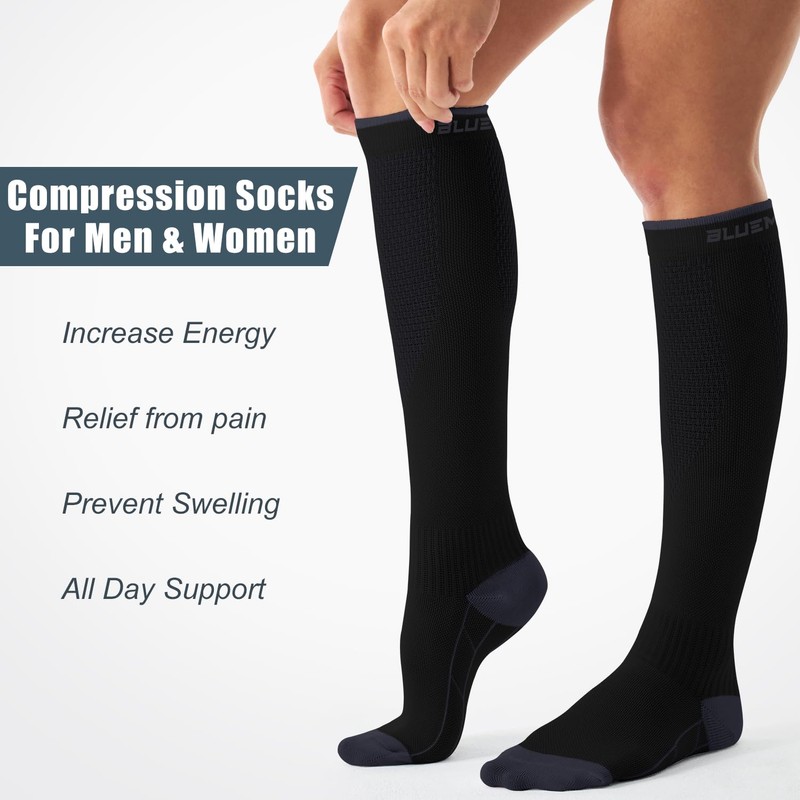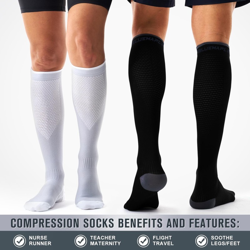 - [Upgrade Compression Socks]:Say goodbye to leg discomfort!Our advanced compression socks harness scientifically proven technology to enhance blood circulation,reduce swelling, and alleviate pain.Blending style,innovation,and science,they deliver unmatched comfort and performance at an affordable price. Our compression socks redefine compression wear,energizing your legs for all-day vitality without compromising quality or style.