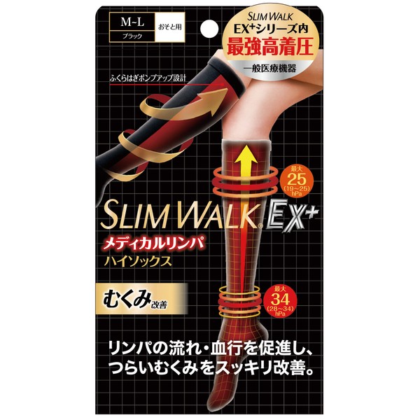 Compression Socks Slim Walk Medical Lymph High Socks Black M-L Compression Socks Swelling Elastic Stockings