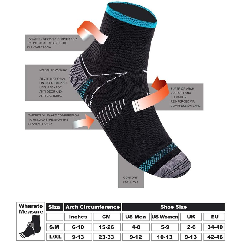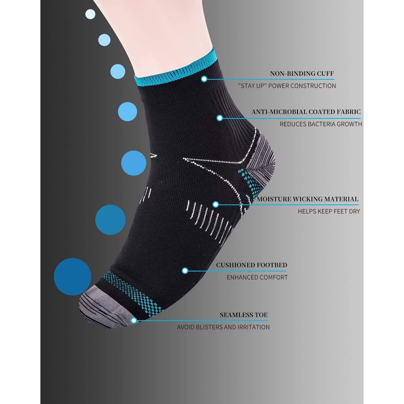 - Exclusive wicking and quick drying fibers compression socks can prevent the growth of bacteria and fungus effectively. Moisture-wicking design to keep feet dry,Anti-bacterial properties to promote foot health. Targeted compression zones provide varying levels of support from moderate to extra firm. Help relieve pain & discomfort related to plantar fasciitis.