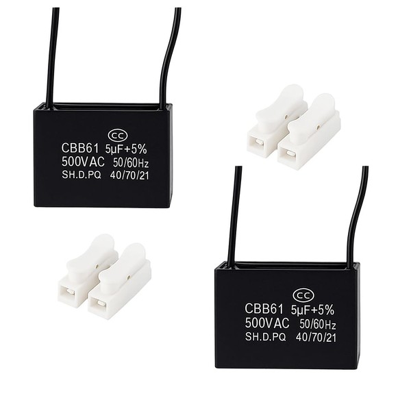 CompStudio 1PC 500V 5UF CBB61 Terminal Ceiling Fan Motor Running Rectangle Capacitor 2 Wires