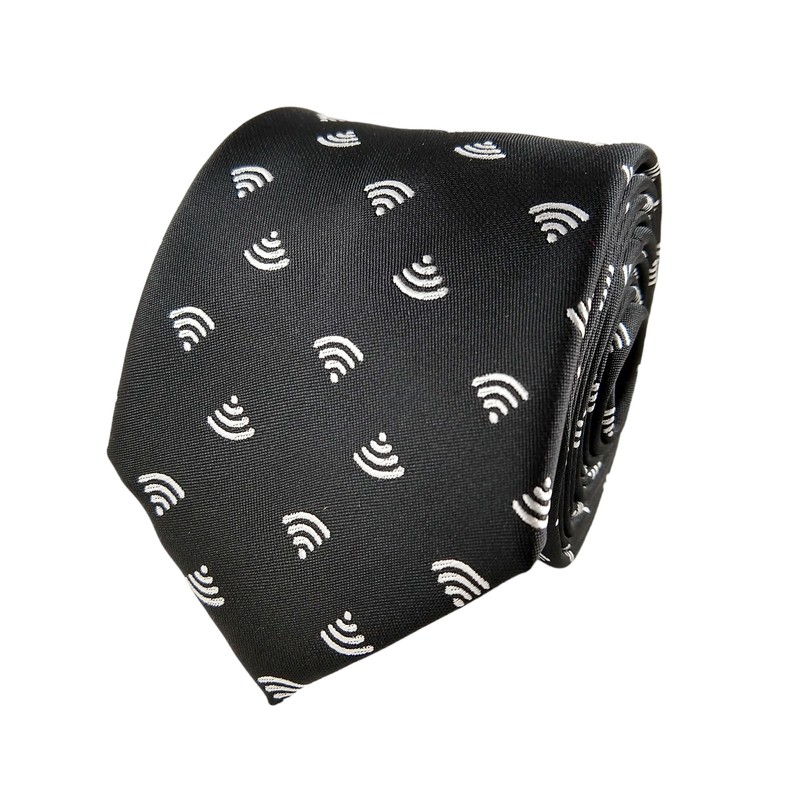 Computer Apparel - Men's Computer Tie - Wifi Necktie - Wifi Tie - Tech Gift - Black & White - Microfiber, Wifi Black & White, Standard