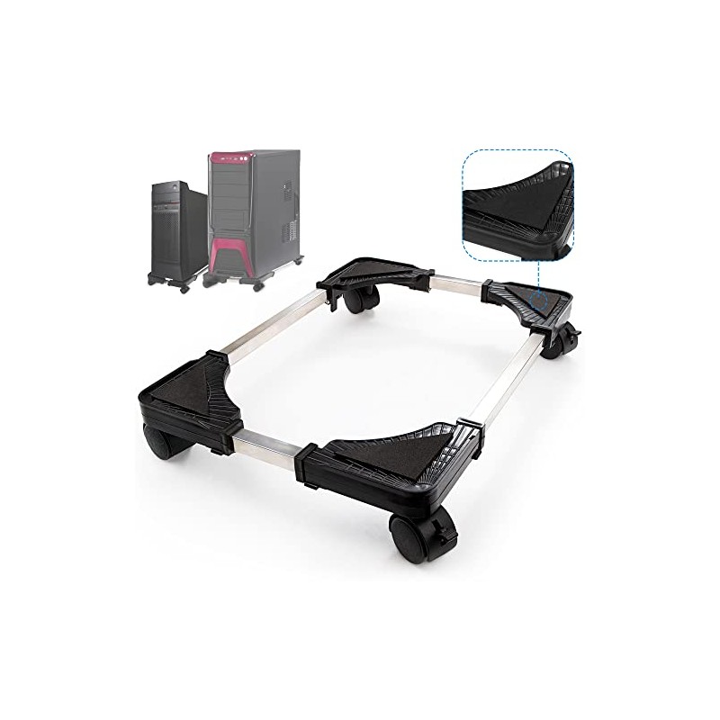 - [Perfect design]: This cart is adjustable (Length:15.74-21.25inches,Width:7.48-13.38inches) allowing it to accommodate most of computers CPU.The gap on the surface of the pc bracket provides better ventilation and cooling for the host and protects the normal use of the computer. In addition, we also present a Velcro strap to help you solve the storage of the computer data cable.