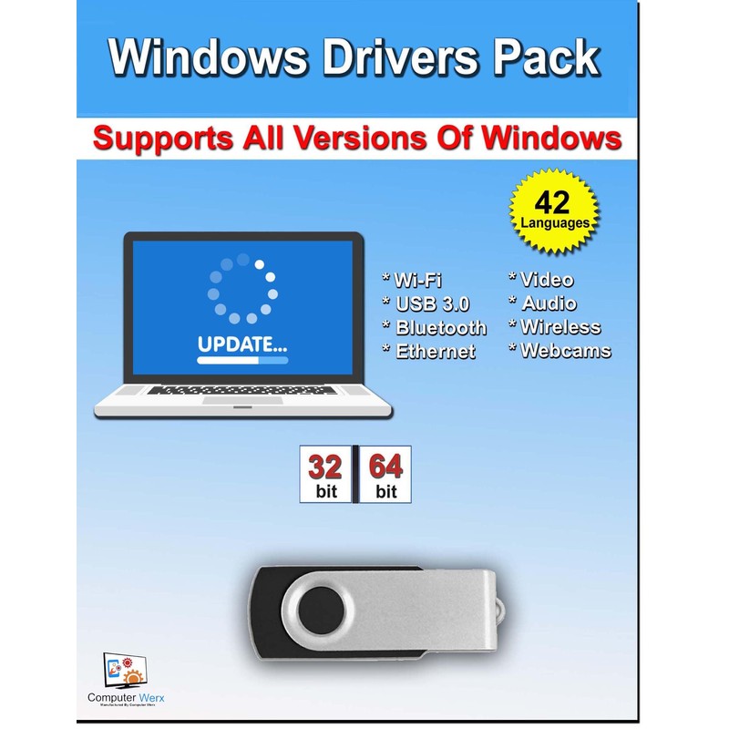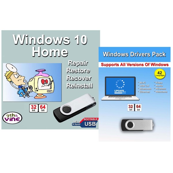 Computer Werx Compatible with Windows 10 Home 32/64 bit USB With Key. Install, Upgrade, Recover, Repair and Restore Plus Windows Drivers USB. 2 Pack