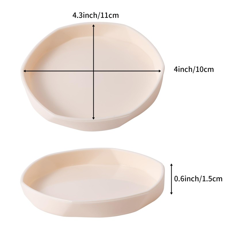 COMSUN 4 Pack Small Reptile Food Dish Bowl, Plastic Worm Water Dish Plate for Lizard Gecko Bearded Dragon Chameleon 4" W x 4" D x 0.5" H, White and Grey