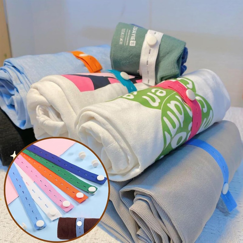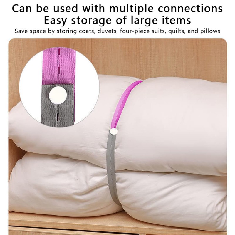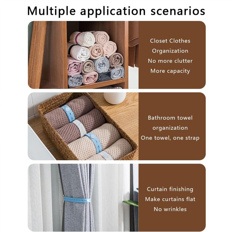 COMZPLIFE Elastic Band with Buttonholes, 100Pcs Roll-up Closet Organizer for Bed Sheet, Adjustable Clothing Storage Strap with Button, Travel Luggage Space Saver