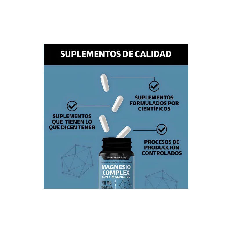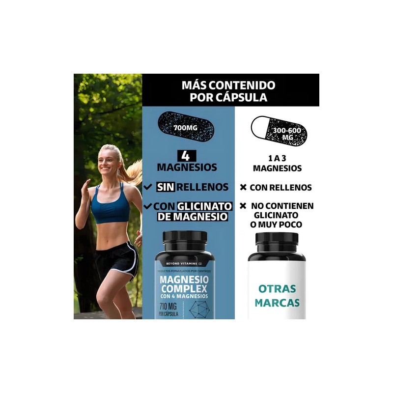 CON 4 MAGNESIOS: Citrato de Magnesio, Glicinato de Magnesio, Gluconato de Magnesio y Óxido de Magnesio | Magnesium Suplemento Alimenticio - 60 cápsulas