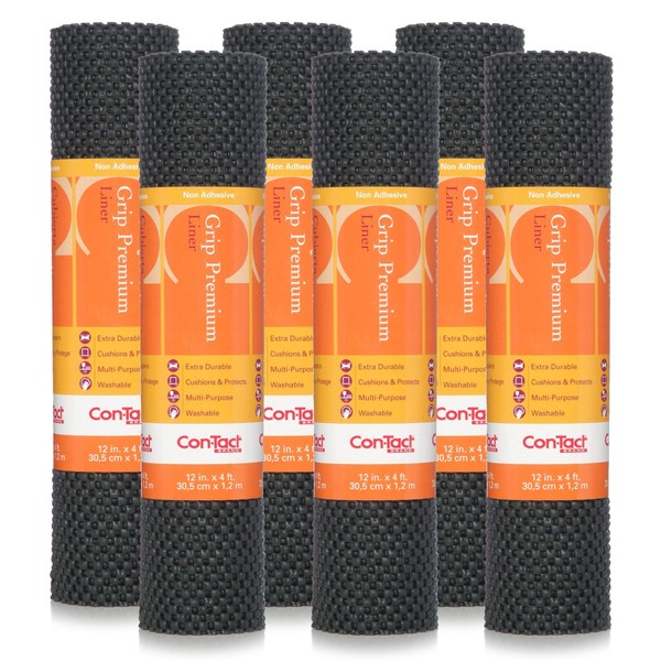 Con-Tact Brand Grip Premium Thick Non-Adhesive Shelf and Drawer Liner, 12" x 4', Black, 6 Count