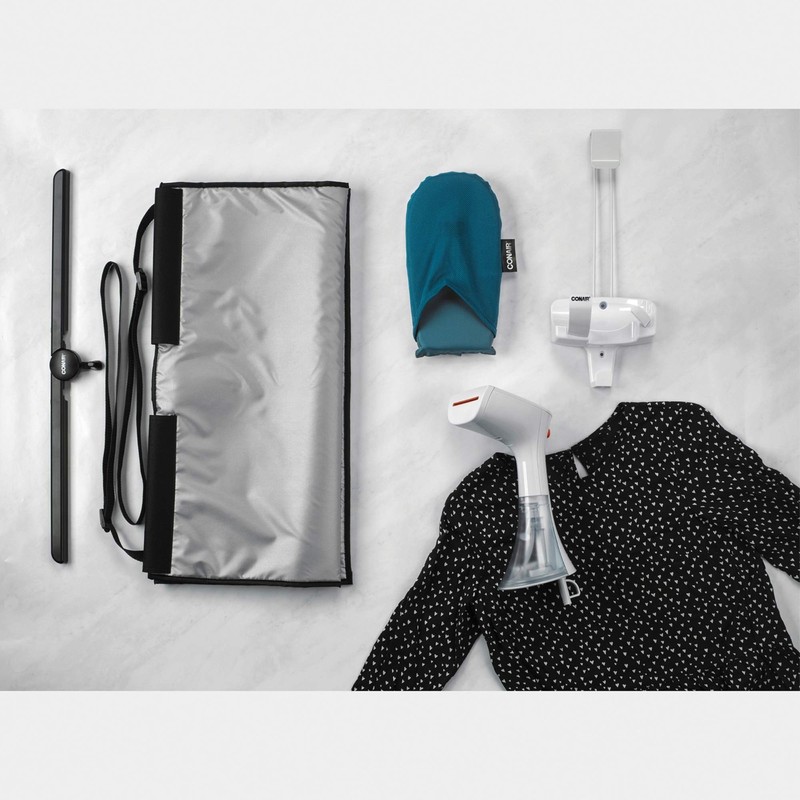 - Garment Steaming Protection Pad: This heat resistant pad helps keep doors and walls protected while steaming your clothes; the vertical surface allows you to easily press out tough wrinkles