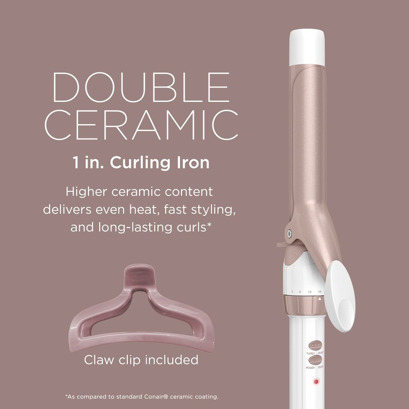 Conair Double Ceramic 1-Inch Curling Iron with Bonus Claw Clip, 1.0" Barrel Produces Classic Curls – for use on Short, Medium, and Long Hair
