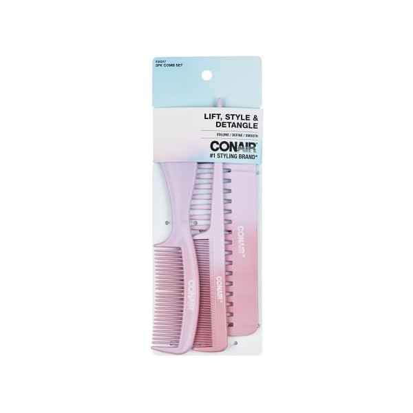 Conair Lift, Style & Detangle, Pink & Puarple, Comb Set - 3 Count