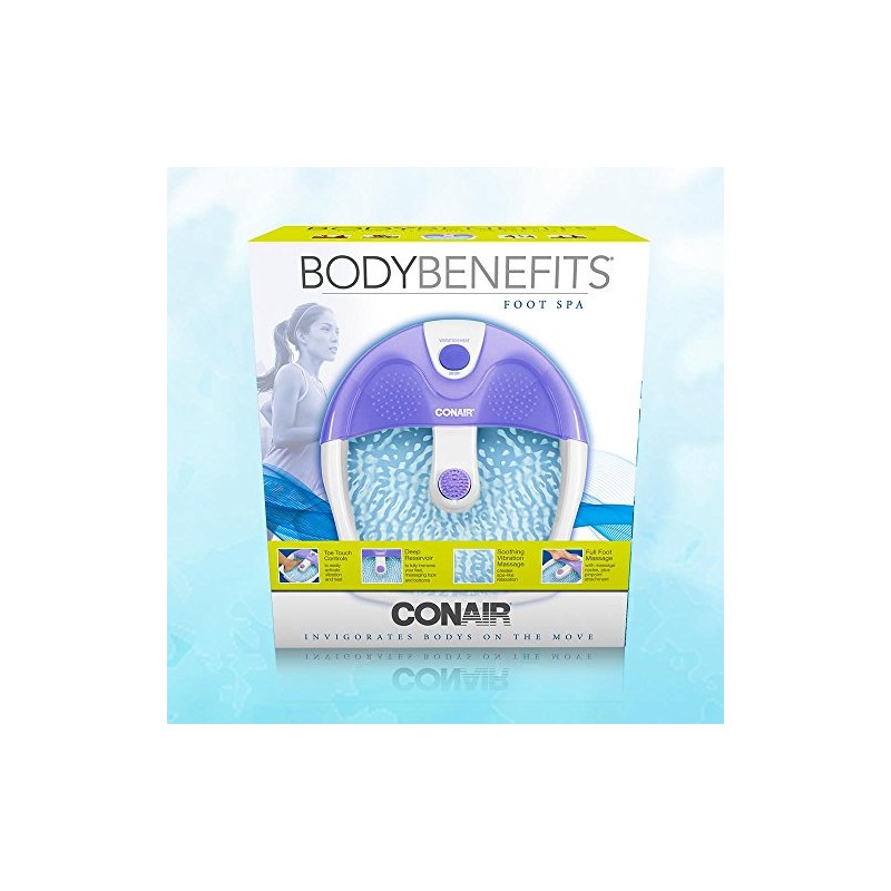 Treat your feet to a massage and spa experience at home! the Conair Foot spa/ pedicure spa with soothing foot massage vibration comforts your feet in warm relaxation. The toe-touch control on this foot spa makes it easy to activate massage intensity. The foot massage attachment and vibrating nodes in the foot spa provide extra foot massage action for a more deep, full foot massage. With this foot bath, it's easy to take care of one of the hardest Working parts of your body. The deep reservoir allows you to fully immerse your feet, massaging both the top and bottom of your feet. Whether you want to soak in cool, warm or hot water, This foot spa is especially designed to maintain the temperature you choose. The textured bottom massages feet as you soak, and the vibrating foot massaging nodes add more massage intensity for a deep penetrating foot spa massage. With the Conair Foot spa/ pedicure spa with soothing vibration massage, your feet will always be ready for rest and relaxation. A restful foot bath can provide well-earned stress relief with pampering and rejuvenating properties. This pedicure foot spa gives you a true, home spa experience.