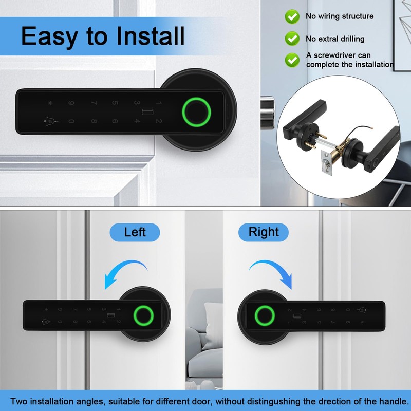 - [ Smart Home Life ] Supports App control, which can easily realize fingerprint management. You can set up guest codes, view unlock records, automatic locks, traffic modes, and security locks through the App to control your home security. Support Tuya APP Bluetooth acceptance, can share users