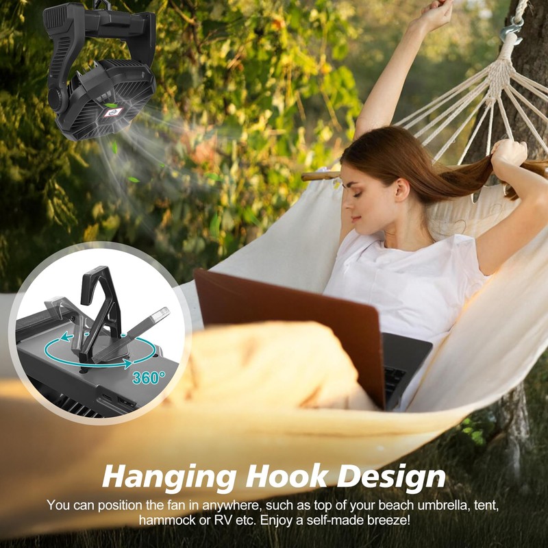 - 【Hanging Anywhere & Durable】: The usb battery powered fan is equipped with hooks in the bottom, it allows for effortless hanging from a variety of structures including tents, umbrellas, and hammocks. 270° rotation adjustment, more flexibility, enabling you to direct airflow precisely where it's needed, enhancing the overall comfort of your space and it standing up to the challenges presented by outdoor.