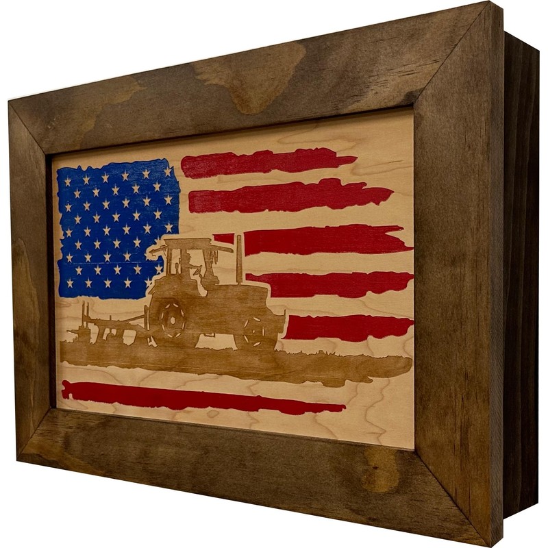 Concealed Gun Cabinet with American Flag, Tractor and Farmer Patriotic Art by Bellewood Designs