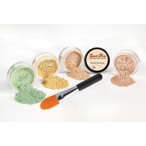 Concealer & Corrector KIT with Brush Mineral Makeup Set Bare Skin Matte Powder (20 gram Sifter Jars, Dark Concealer)