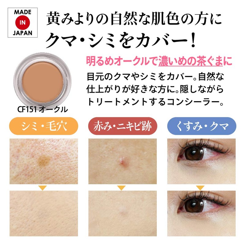 - (CF151 Ochre) Hides the bear around the eyes and conceals visible stains on your cheeks. Available in 8 colors. We carefully selected 8 colors to choose from for various skin tones and imperfections of your skin. Concealer Bear Acne Ochre Pores Dullness Made in Japan Mask Makeup Rough Skin
