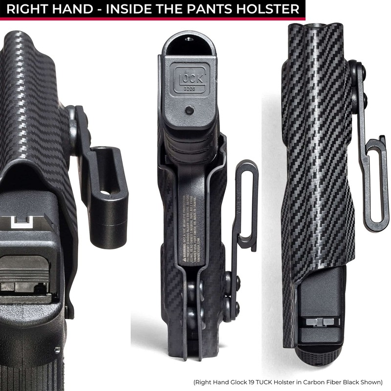 • TUCKABLE INSIDE THE WAISTBAND KYDEX HOLSTER fits: Springfield Hellcat (ONLY unless Specified). Our minimalist Tuckable IWB holsters are designed to be worn comfortably inside the waistband with either a tucked or untucked shirt for proper concealed carry. We use .08” KYDEX precision formed over our proprietary in house CAD designed & crafted Aluminum molds. This ensures unparalleled consistency, fit, quality, durability, lightness, comfort, & uniform features across all our holsters.