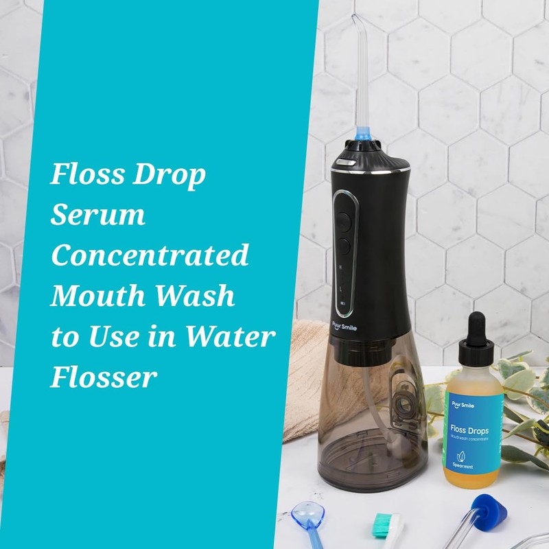 Puur Smile Concentrated Floss Drop Serum – 2oz Concentrated Mouth Wash to Use in Water Flosser | Natural Essentials Promotes Good Breath | Organic Spearmint Drop Supports Good Oral Health