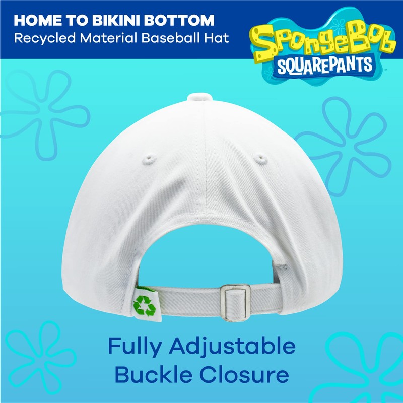 Concept One Spongebob Squarepants Dad Hat, Home to Bikini Bottom Recycled Material Adult Baseball Cap, White, One Size