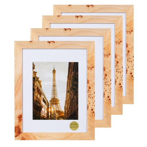 Concepts (Set Of 4 11x14 Burl Wood Picture Frames Matted To 8x10-NATURAL FINISH Picture Frames for Family Photos - Elegant Wallhung and Tabletop Decor in Bulk