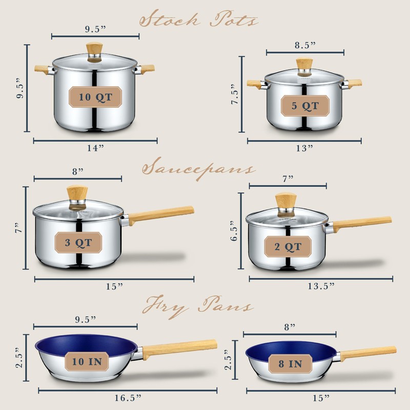 Concord 10 Piece Stainless Steel Cookware Set, includes Saucepans, Stock Pots and Pans/Skillets