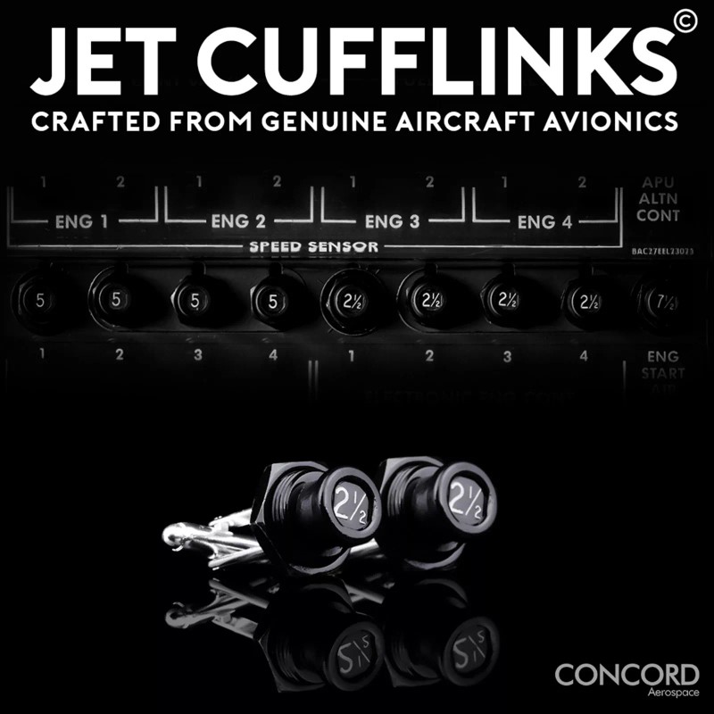 Own a real piece of aviation history with Concord Aerospace Jet Cufflinks ®. Handcrafted from real avionic panel circuit breakers, a set of Jet Cufflinks ® is an exquisite showcase of form, function, aesthetics, heritage and design.