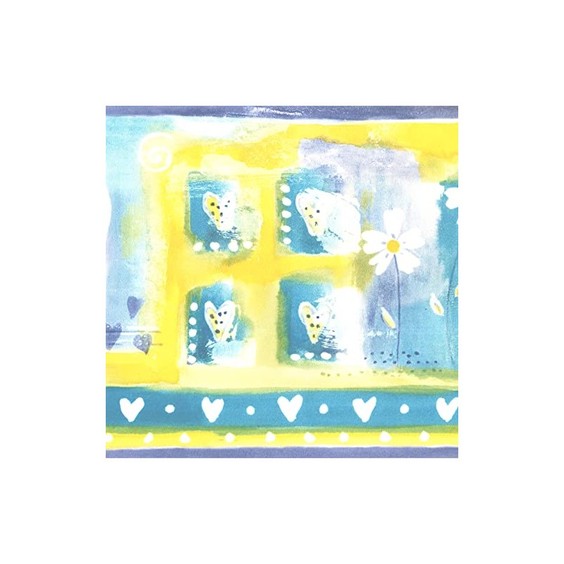 CONCORD WALLCOVERINGS ™ Wallpaper Border Abstract Pattern Hearts Flowers Swirls for Kid's Room Bedroom Playroom, Blue Yellow Green, 15 ft by 6.8 in NK74850