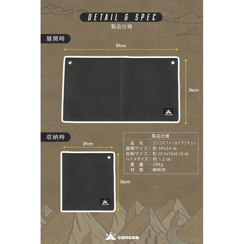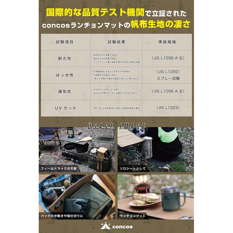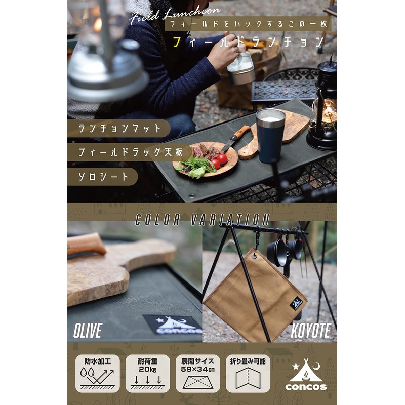 concos. Field Luncheon, Extra Thick Waterproof Canvas, Field Rack, Tabletop, Solo Sheet, Rugged, Solo Camping (Olive)