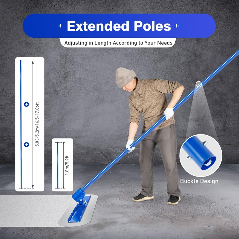 - Flexible Connector: It connects the poles and the trowel through a connector, allowing you to easily adjust the sliding direction. Turning the pole clockwise can make it adapt to the direction of push forward, while turning counterclockwise can make it adapt to the direction of pull backward.