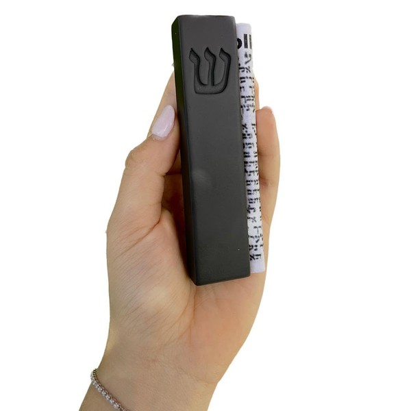 Concrete Mezuzah Case with Scroll – Easy Peel-and-Stick Installation, Durable Protective Cover for Home Blessings and Security (Black, 5 Inches)