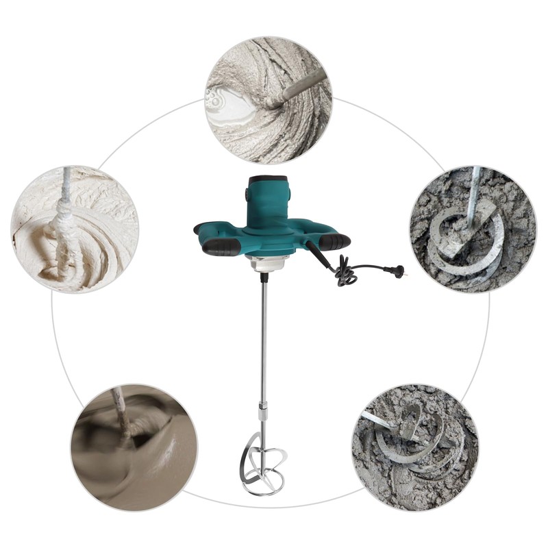 - High Efficiency: Its 2100W high power and powerful all-copper motor make the concrete mixer rotate faster up to 800rpm, so it can efficiently finish mixing concrete in a shorter time to save your time and ensure great homogeneity of the concrete.