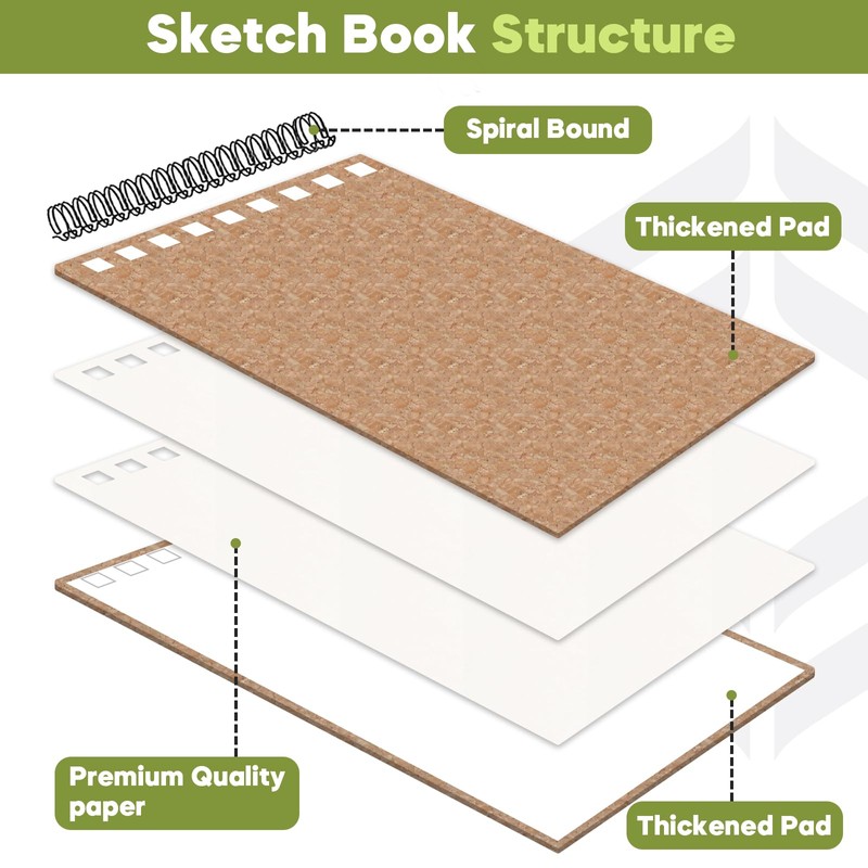 CONDA 9 x 12 Inches Sketch Book, Cork Softcover Art Sketchbook, 100 Sheets, Art Sketch Pad for Beginnerd Artists Adults Teenagers