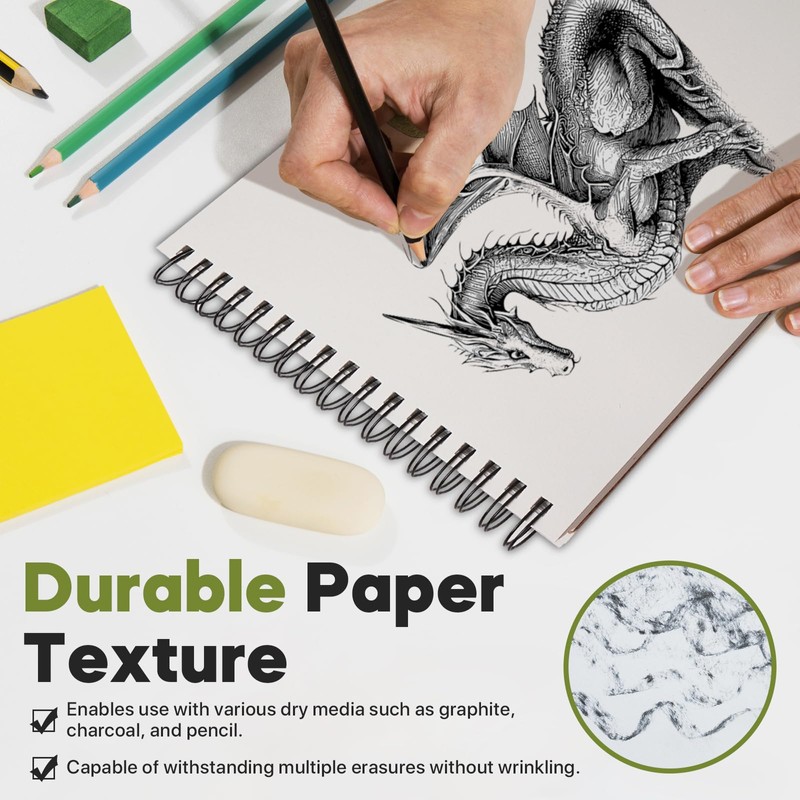 - 【DURABLE HIGH QUALITY PAPER】: Paper is extremely tough and durable,So it can withstand multiple paintings without deformation or penetration.100 sheets each pad of (100gsm/68lb) fine textured bright paper; providing better drawing & writing experience.--Ideal for all dry media including pencil, pen, pastels, charcoal, sketching sticks,gel pen and so on. NOT applicable to markers.
