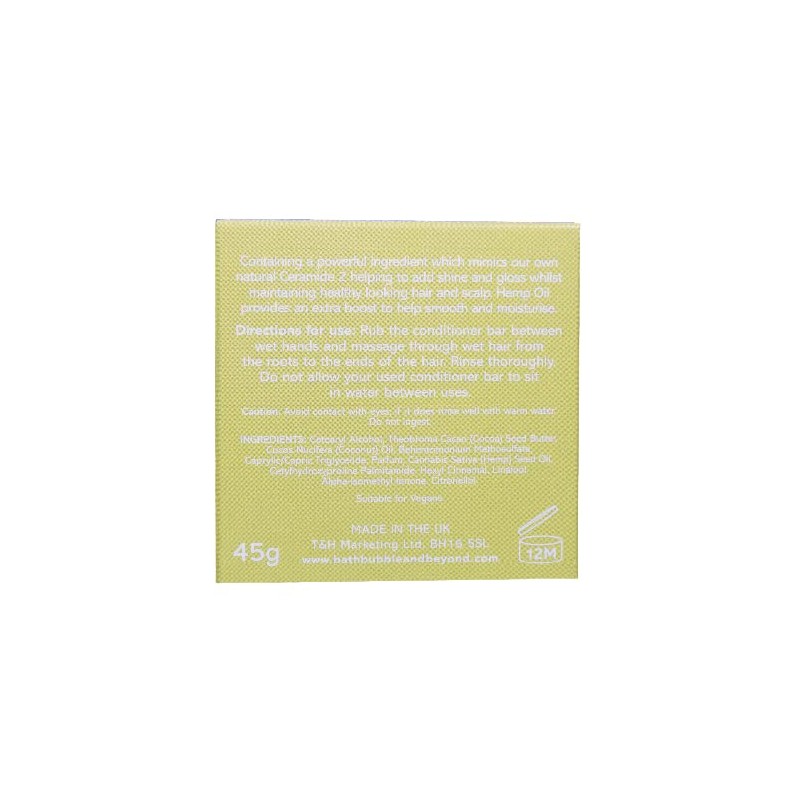 • 1 x 50g conditioner bar, containing a powerful ingredient which mimics our own natural Ceramide 2 helping to add shine and gloss whilst maintaining healthy looking hair and scalp. Hemp Oil provides an extra boost to help smooth and moisturise
