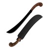20 1/4" overall. 14 1/4" 1075 high carbon steel blade with black epoxy powder coating. Full tang. Brown hardwood handle. Black leather belt sheath.