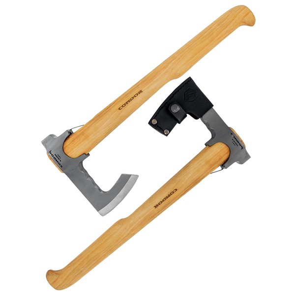 Condor Tool & Knife TravelHawk Axe - Handcrafted Leather Sheath - 1060 High Carbon Steel Camping Axe with a Light Wooden Hickory Handle - 6.6in Blade - 30.3oz
