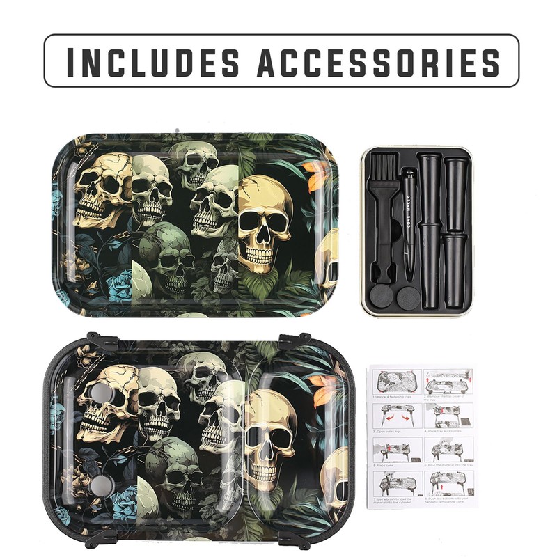 - OUTSTANDING PERFORMANCE:It always makes good, clean pre-rolled cones. It includes a foldable stand, metal tray, cone funnels (two king size and two 1 1/4 size), a cleaning brush, and storage rack. Works with both king size and 1 1/4 size cones.
