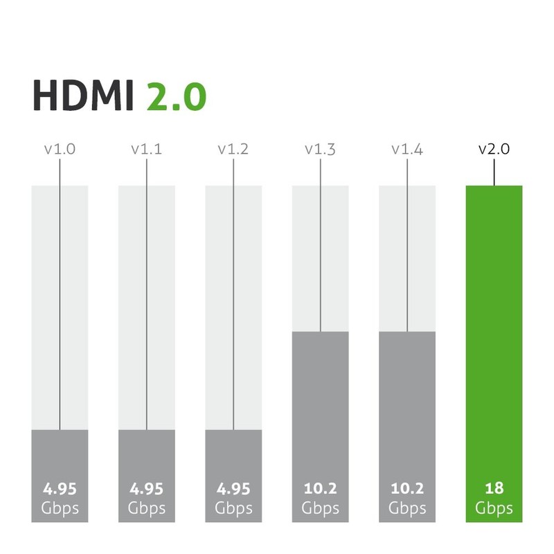 - HDMI 2.0 support: ARC audio return channel, 4Kx2K resolution 50Hz/60 HZ, dual video streams, multistrem to multiusers, 21:9 image format